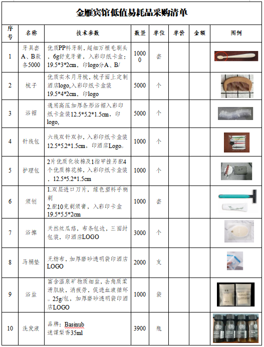 三、采购内容:金雁宾馆客房低值易耗品